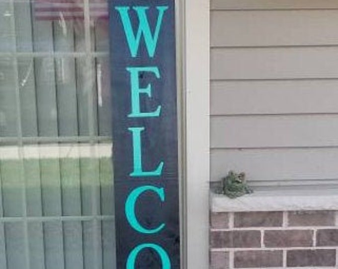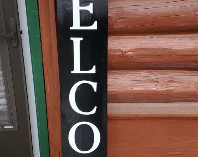 WELCOME Front porch wooden sign, front porch sign, Welcome sign, Vertical Welcome sign, entry way sign, rustic Welcome sign, Black welcome